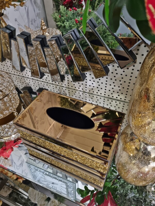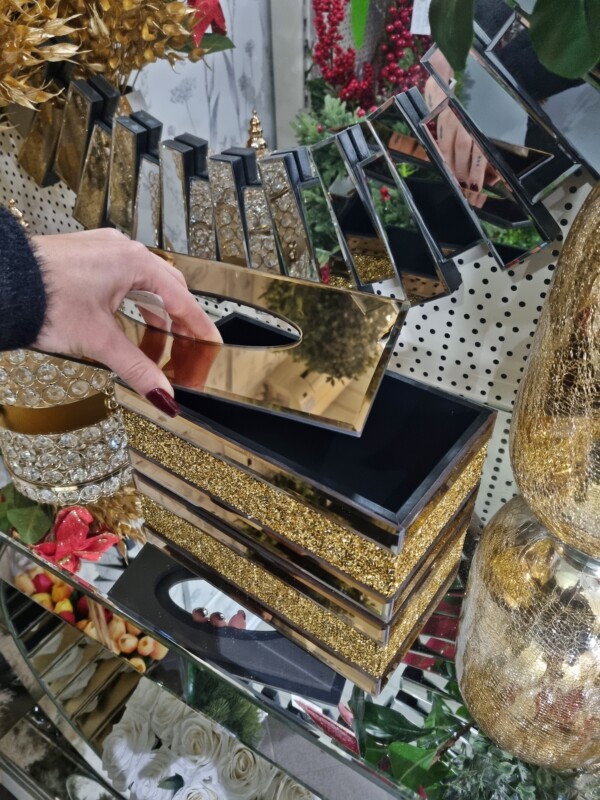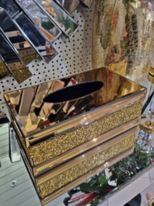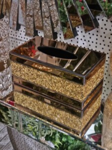 Dodaj odrobiny luksusu do swojego wnętrza, dzięki lustrzanemu chustecznikowi, który pełni nie tylko funkcję praktyczną, ale też stanowi efektowną ozdobę pomieszczenia.