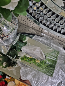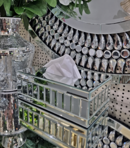 Dodaj odrobiny luksusu do swojego wnętrza, dzięki lustrzanemu chustecznikowi, który pełni nie tylko funkcję praktyczną, ale też stanowi efektowną ozdobę pomieszczenia.