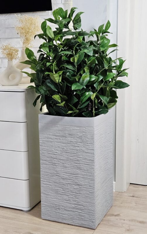 Naturalny wygląd donicy doskonale będzie pasował do każdego wnętrza a przede wszystkim na taras, balkon czy patio.