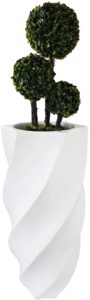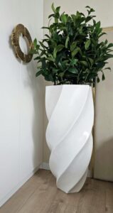 Wysoka, ekskluzywna donica z mieszanki gipsu, żywicy poliestrowej i alabastru.