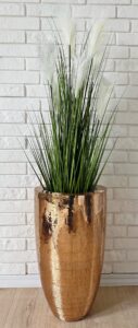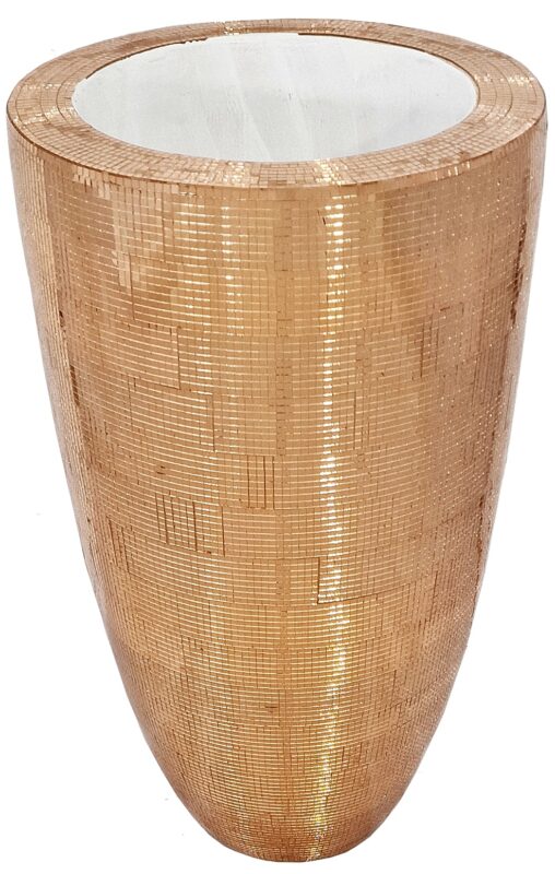Wysoka, ekskluzywna donica z mieszanki gipsu, żywicy poliestrowej i alabastru.