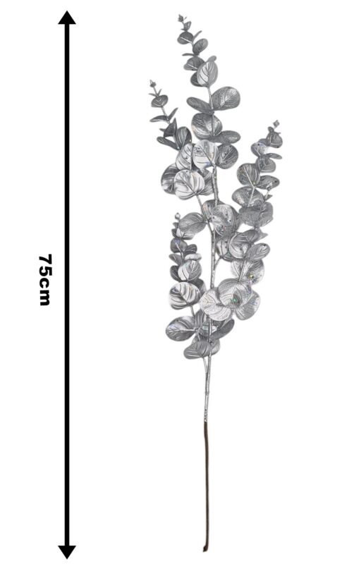 Gałązka x5 EUKALIPTUS SREBRNY brokat z drobinkami 75 cm