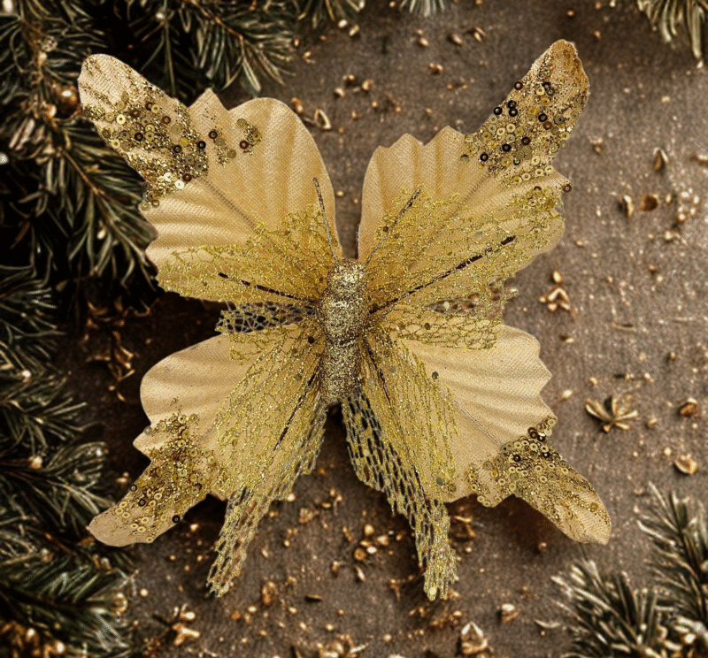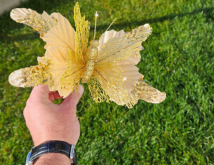 MOTYL BROKATOWY 23cm 259153-3 CHOINKA OZDOBA STROIK NA WESELE DEKORACJE