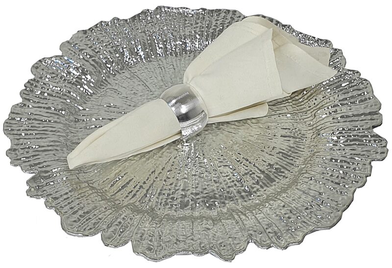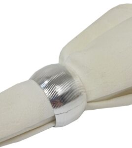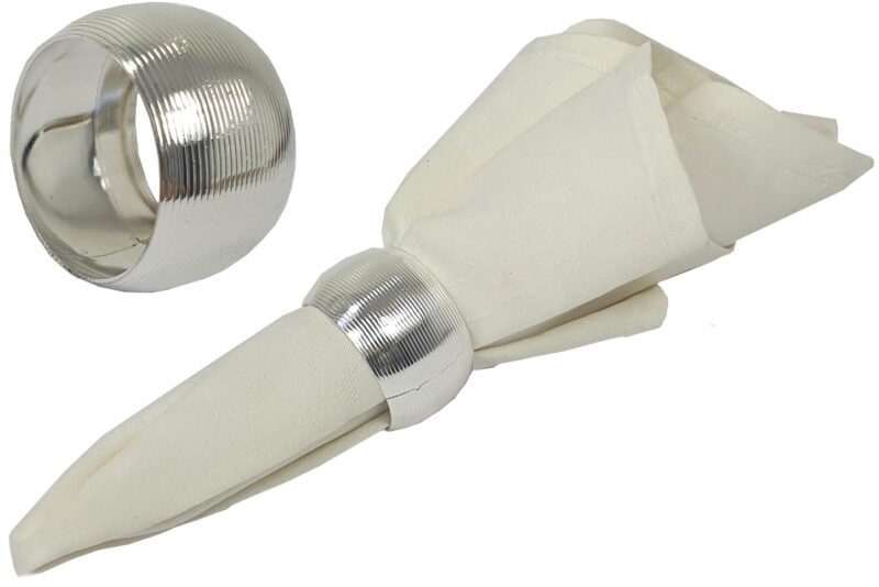 Zestaw zawiera 4 sztuki obrączek na serwetki, który świetnie sprawdzi się do dekoracji stołu. Srebrne pierścienie umieszczone z serwetą na talerzach lub dekoracyjnych podkładkach tworzą efektowną całość.