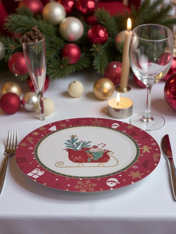 ŚWIĄTECZNY PLASTIKOWY PODTALERZ – DEKORACJA POD TALERZ NA STÓŁ Ø33 UP01-109