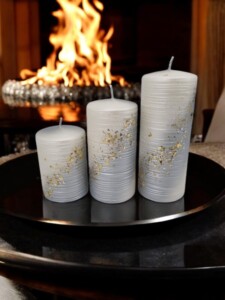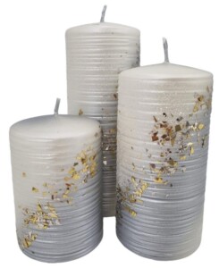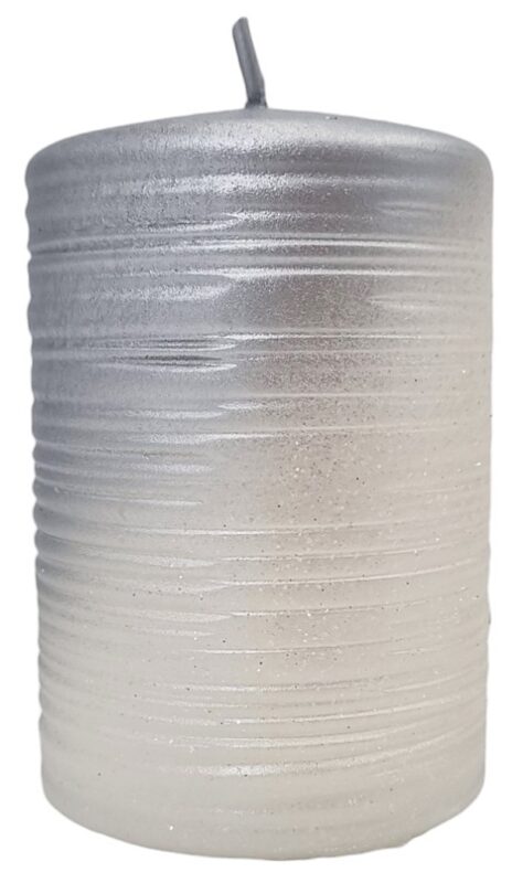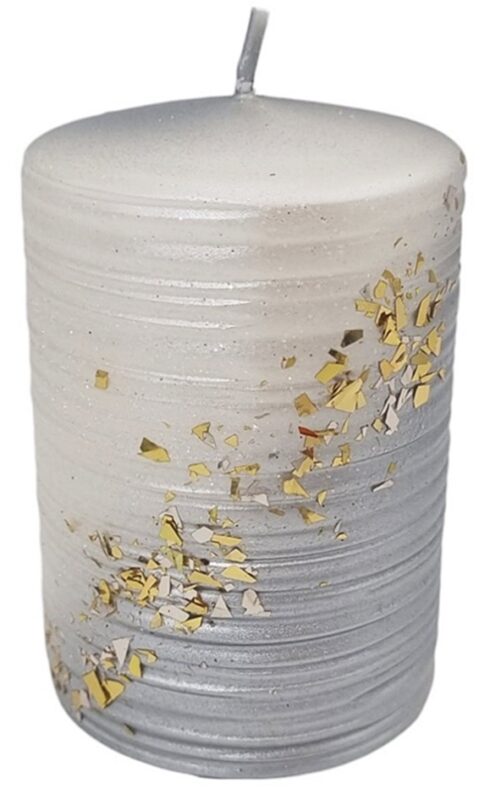 Świeca walec STARDUST 10cm biało-srebrna z drobinkami złota