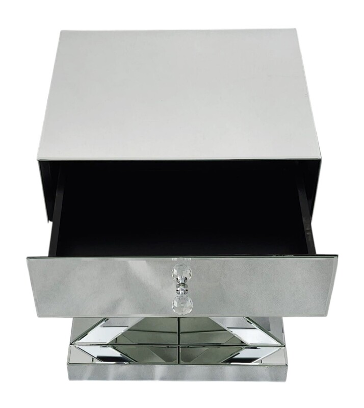 Luksusowa szafka nocna z lustrzanym wykończeniem – styl glamour